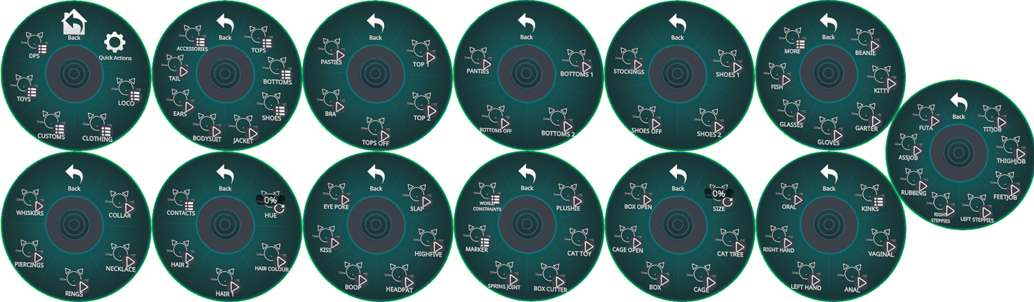 Toggles - HERE! Not included in the video but on the avatar - contacts for headpat, nose boop, kiss, eye pokes, slap, and highfive.