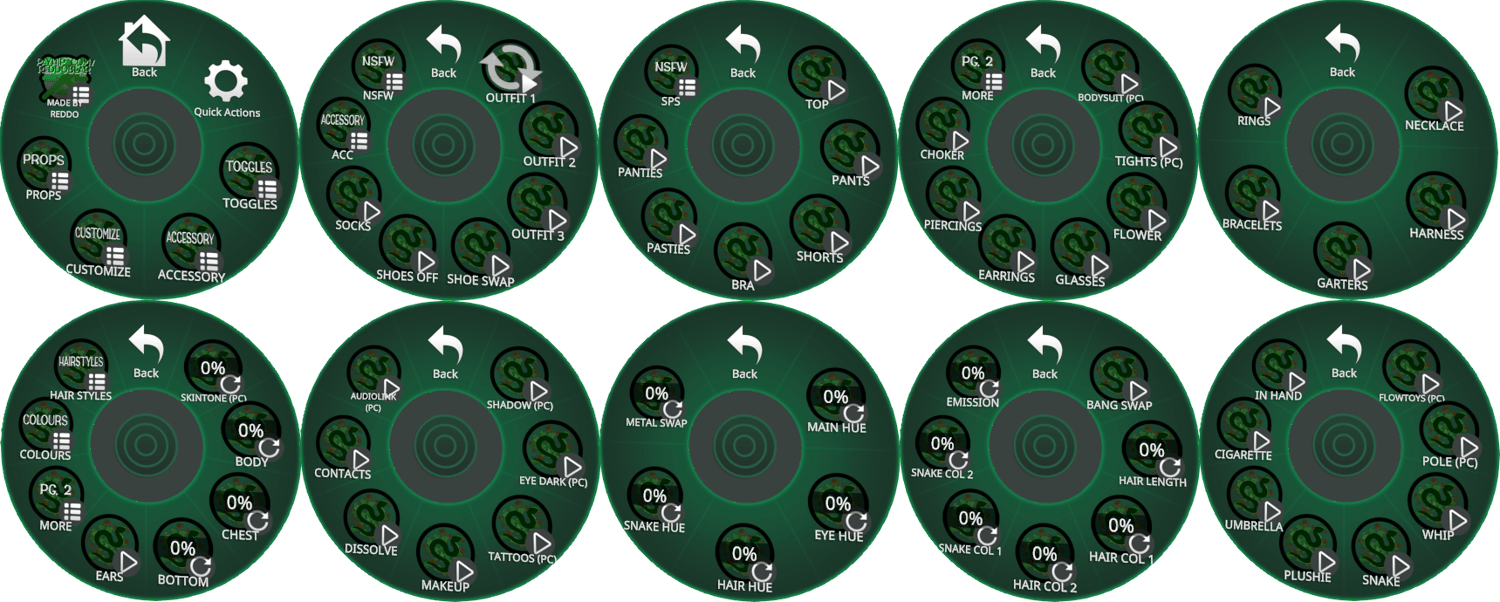 Short snakes | Long snakes | Ponytail snakes | Bang swap | Snake colour 1 | Snake colour 2 | Hair colour 1 | Hair colour 2