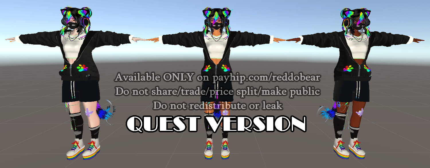 - By buying this avatar, you agree to all rules and any future changes to the rules. If rules are found to be broken, you and/or anyone involved is subject to DMCA, blacklisting, and having your Discord/VRChat/email/etc shared to other creators.