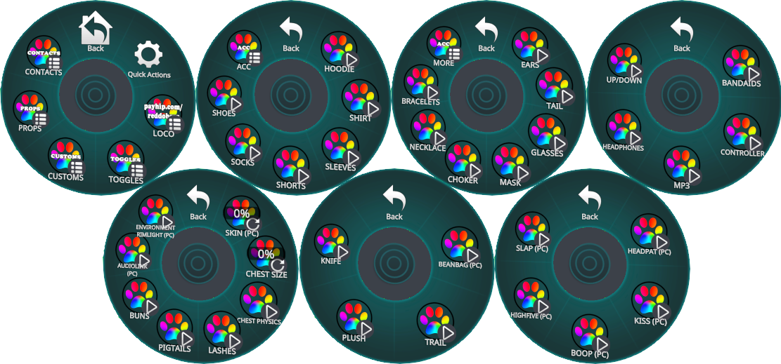 - Skin radial (three tones on Quest)