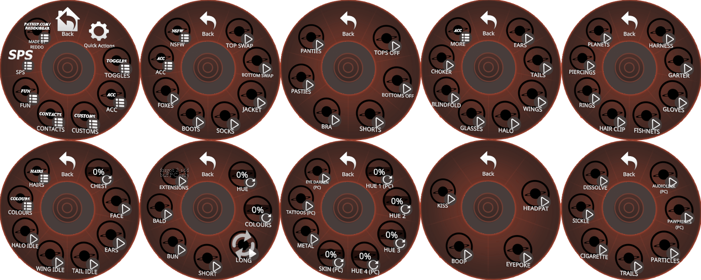 Ears | Tails | Wings | Halo | Glasses | Blindfold | Choker | Harness | Garter | Gloves | Fishnets | Hair clip | Rings | Piercings | Planet anklet