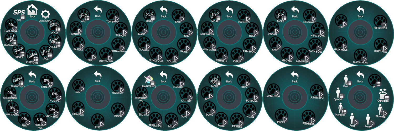 - Black/white swaps for - tops, bottoms, undies, pasties, paws, bows, acc, fishnets, and props
