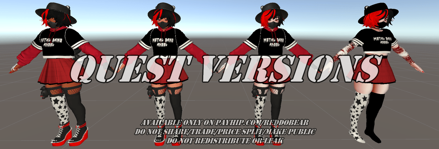 - By buying this avatar, you agree to all rules and any future changes to the rules. If rules are found to be broken, you and/or anyone involved is subject to DMCA, blacklisting, and having your Discord/VRChat/email/etc shared to other creators.